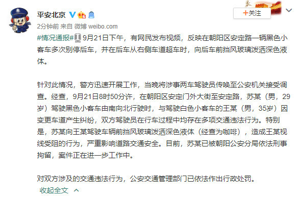 北京一司机疯狂别车还将咖啡泼向对方车窗警方通报来了 腾讯新闻